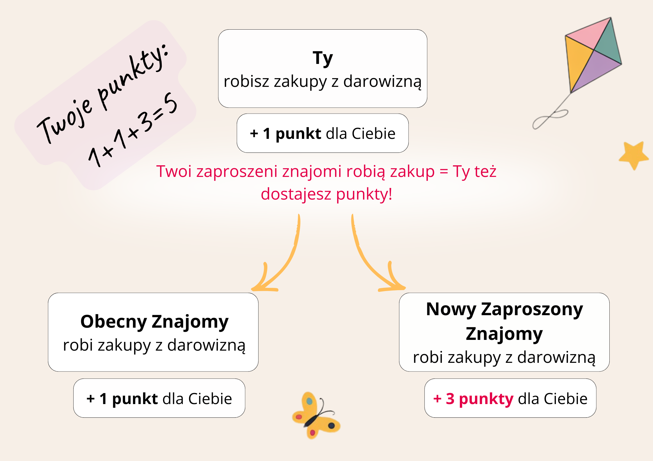 Każdy zakup z darowizną osoby, która dołączyła do nas dzięki Tobie, to kolejny punkt dla Ciebie!